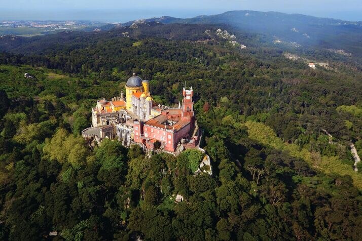 Situado en uno de los picos más altos de Sintra, el palacio se construyó intencionadamente para dominar el paisaje y ser visible desde kilómetros de distancia, incluso desde la costa atlántica en días despejados.